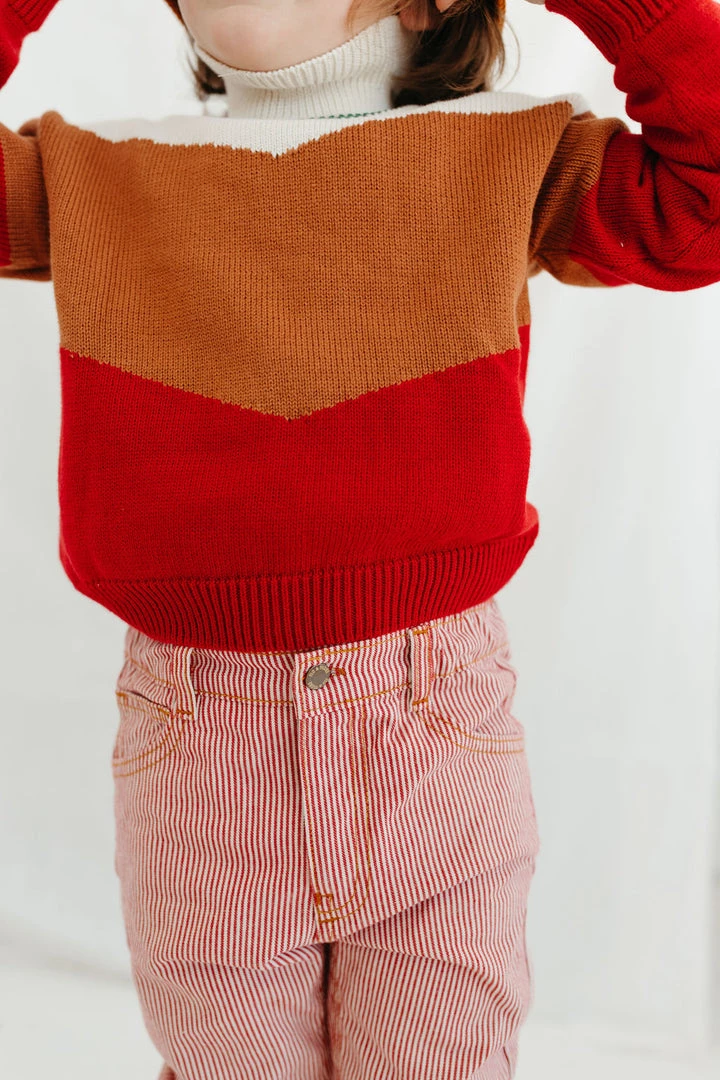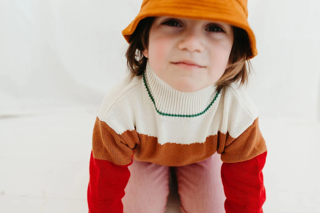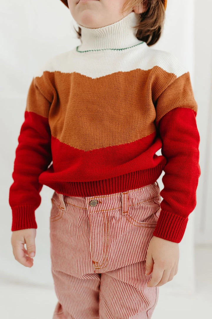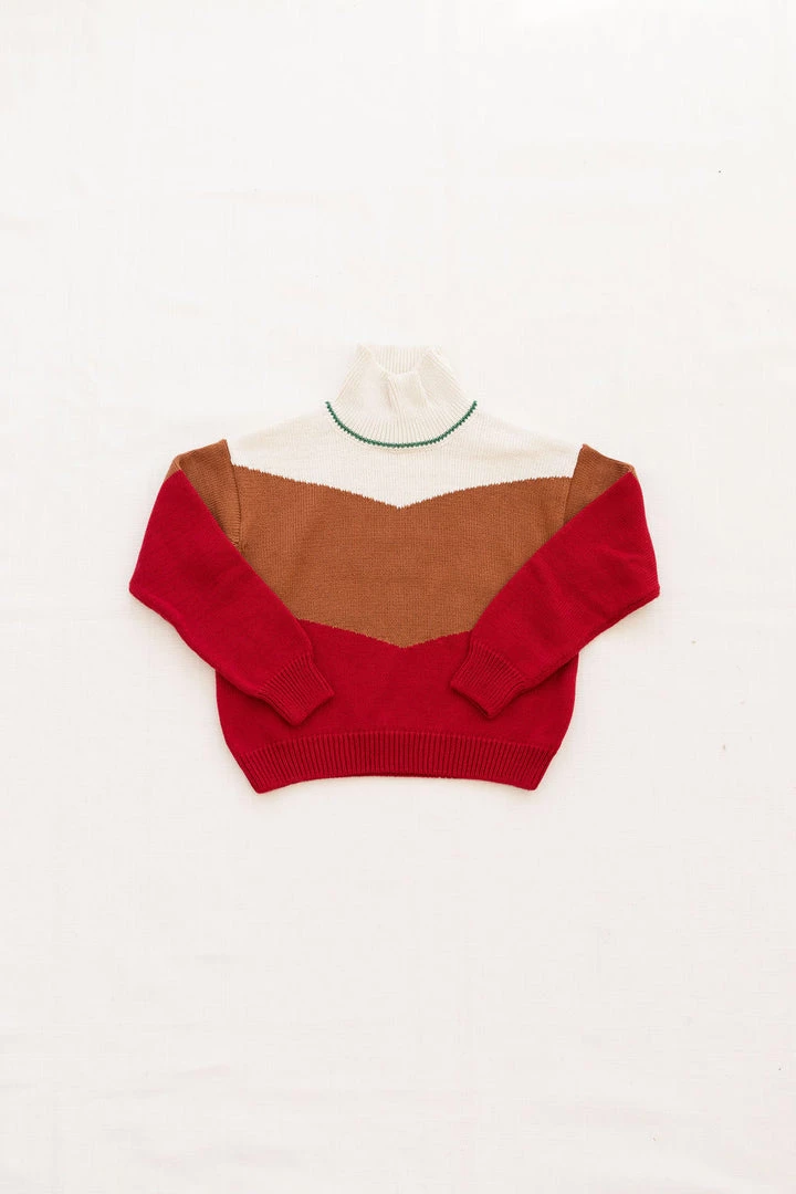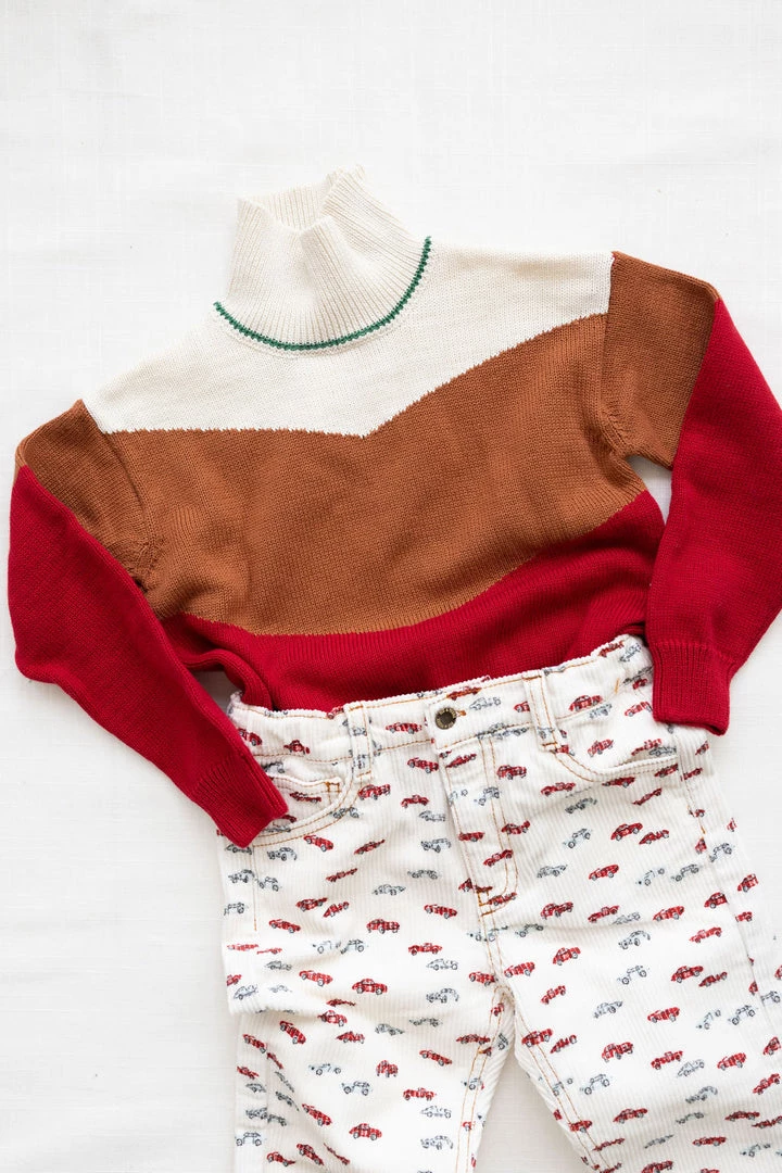 slouchy mock sweater with abstract pattern and cuffed wrists