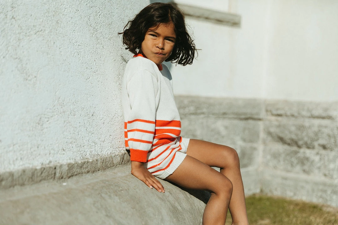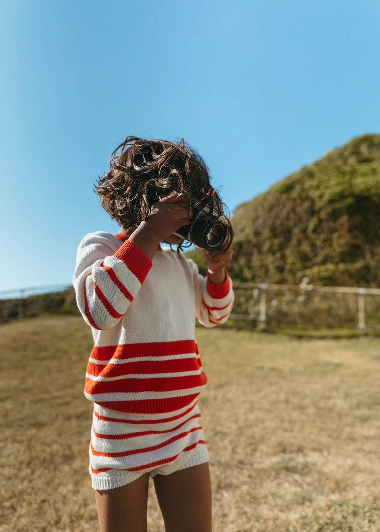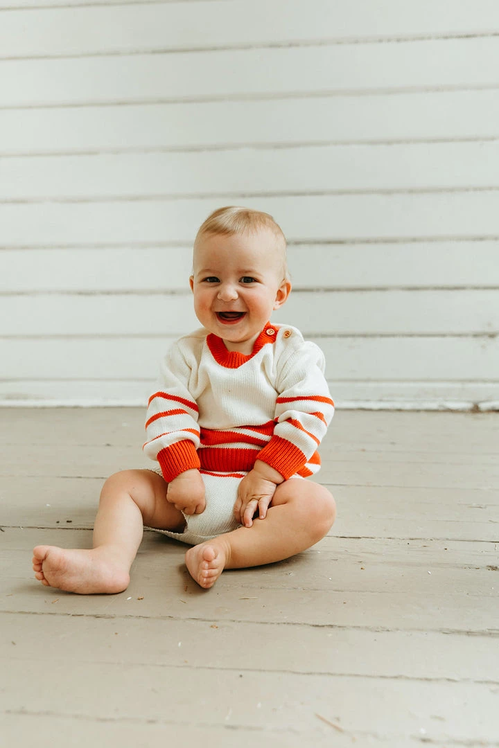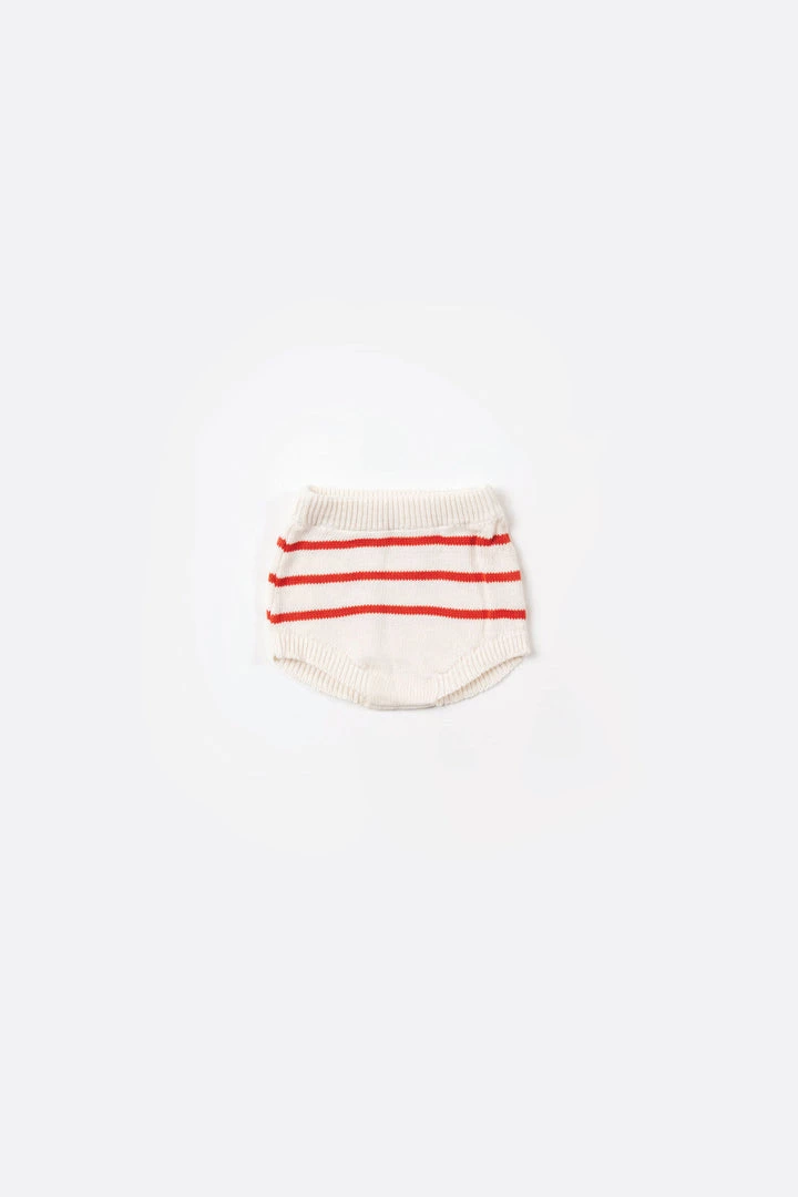 your infants practical knit bloomer in a simple silhouette, makes for the perfect addition to any top with full coverage on the sweet little bottoms, features retro stripe details with ribbed waistband and thigh holes for added dimension, designed to create a soft and comfortable outfit for any day ahead