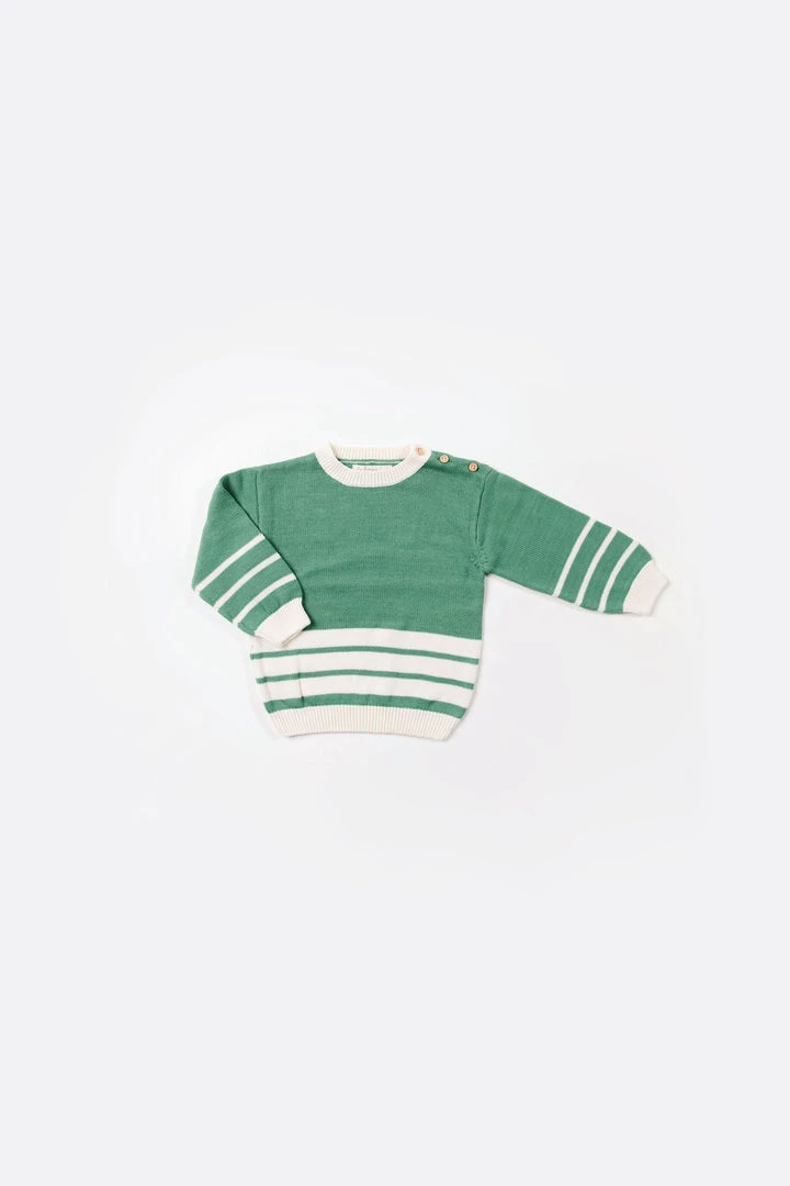 the harbor sweater combines luxury look with practical wear making it the perfect go-to staple, featuring classic stripe detailing, ribbed texture to accentuate the neckline, hemline and cuffs with a round neck design including functional wooden buttons at shoulder to assist with dressing