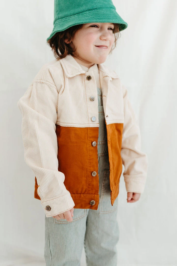 wardrobe staple for this sturdy cord jacket with textured details throughout, contrast sherpa collared neckline, simple button closure on bodice and additional button on wrist for a cuffed look when undone
