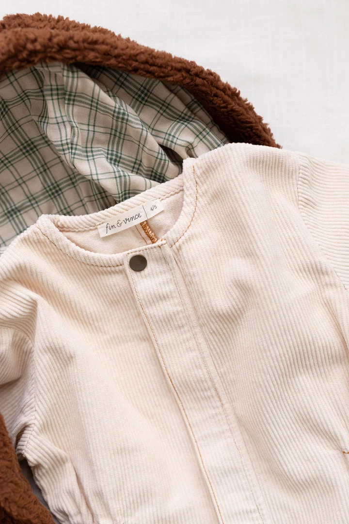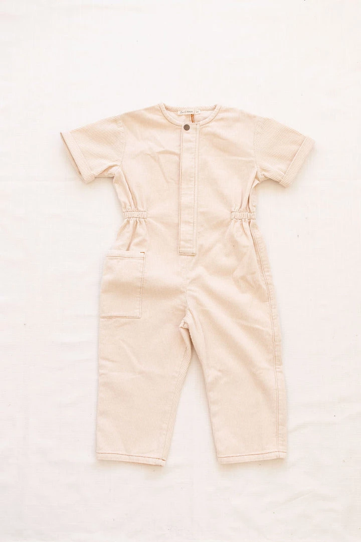 corduroy one piece with relaxed flattering fit, zipper closure down bodice w/ snap closure to conceal, defined waistline and oversized pocket for added dimension