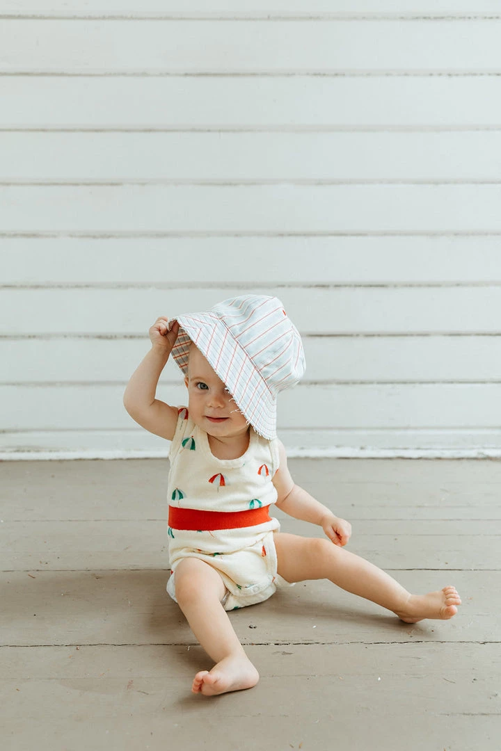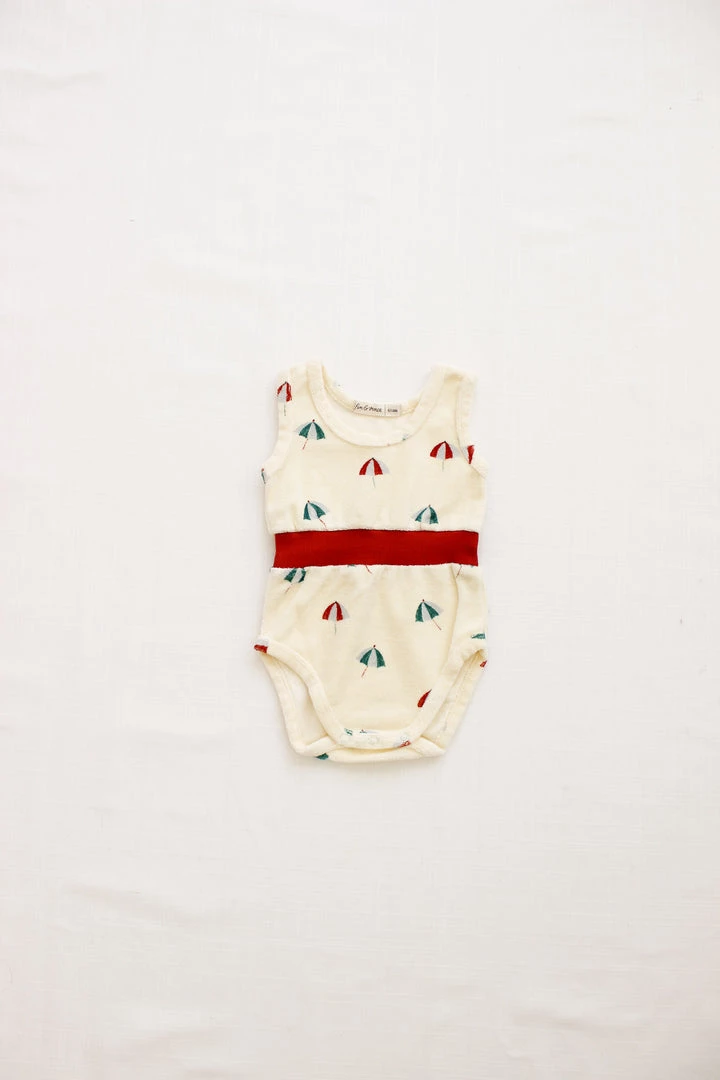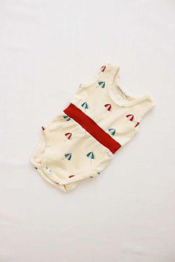 highlighted with a standout waistband and u-neck design this one-piece is stylish and practical! it offers an easy on-and-off design in our absorbent terry cloth fabrication, the playground jumper will quickly make itself your go-to, tuck away as your diaper bag spare for your seasons adventures