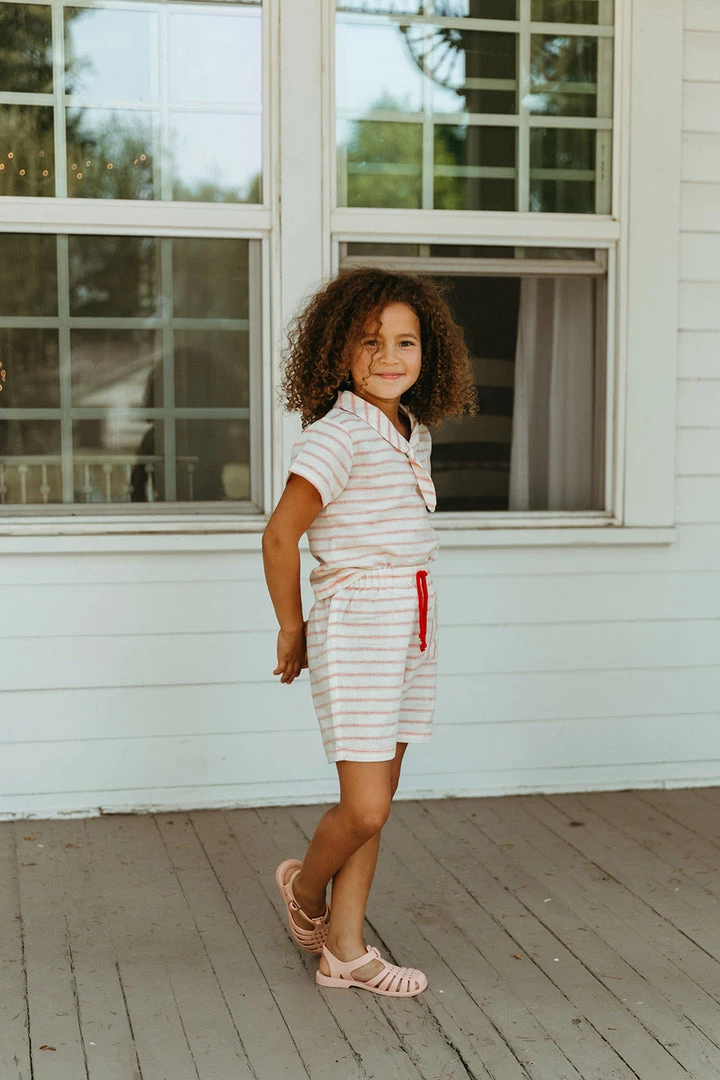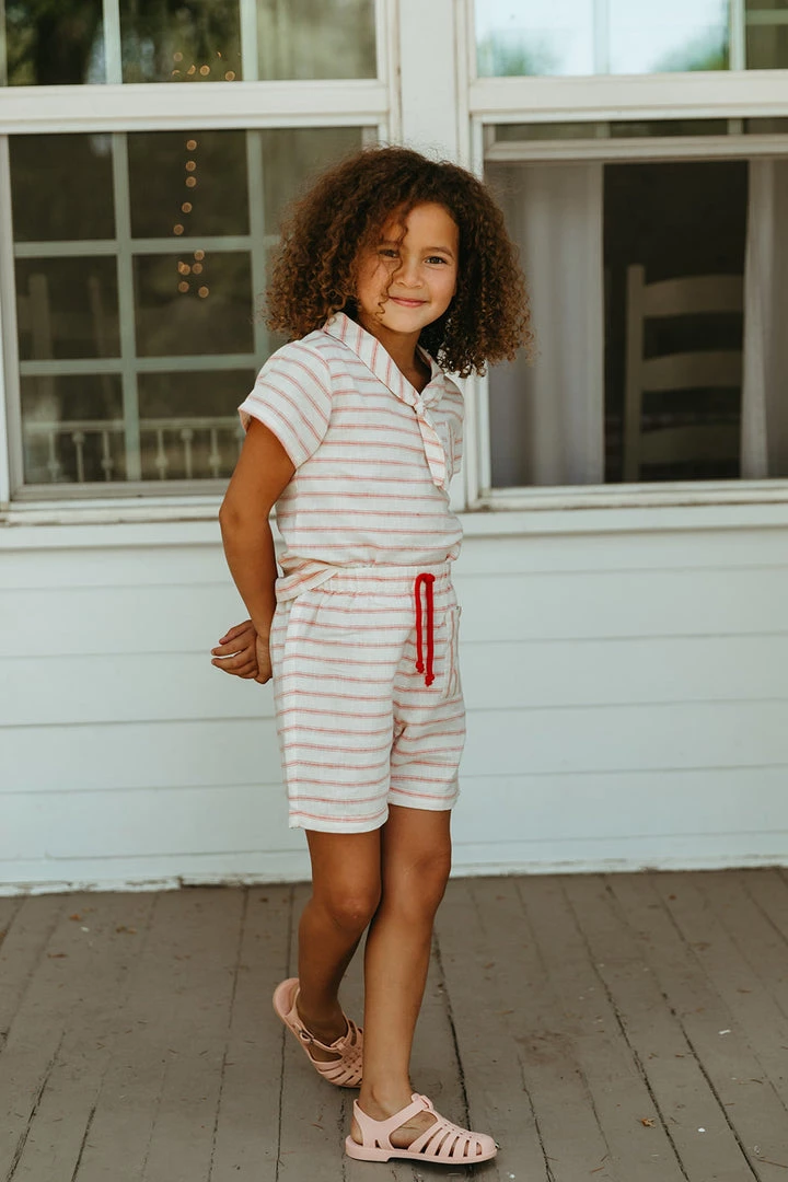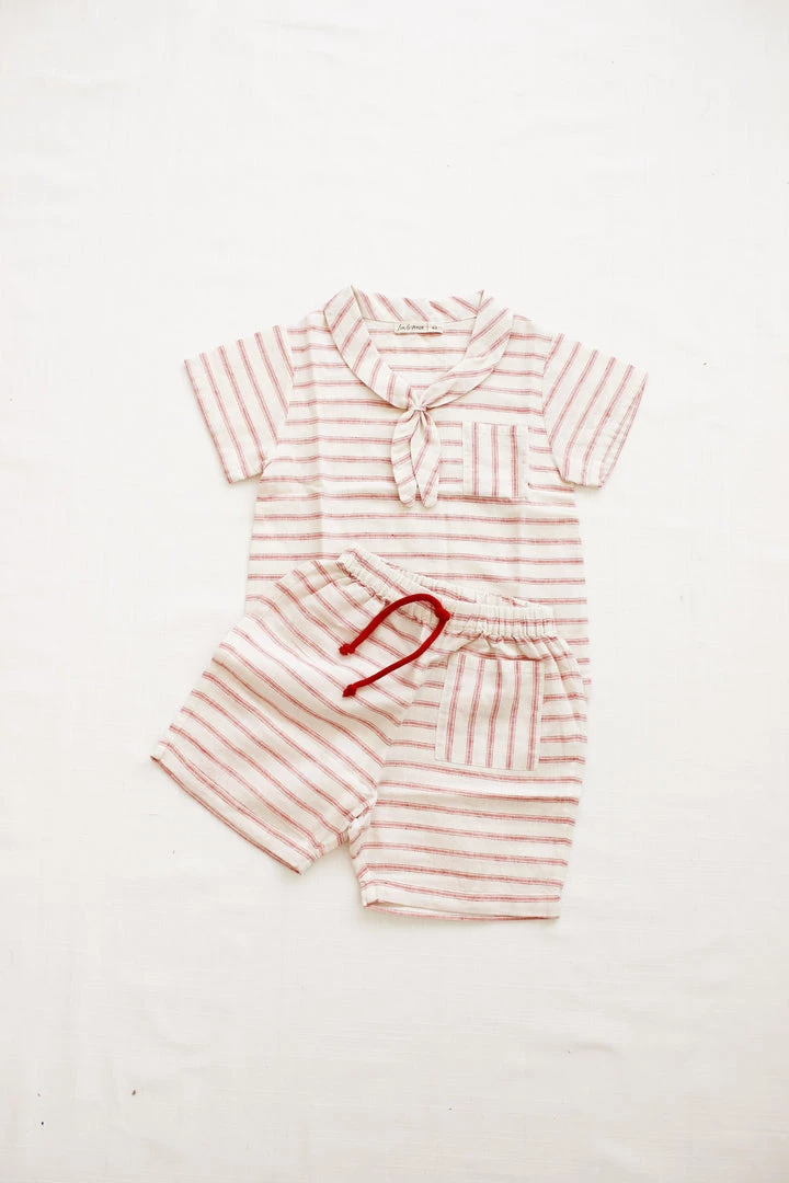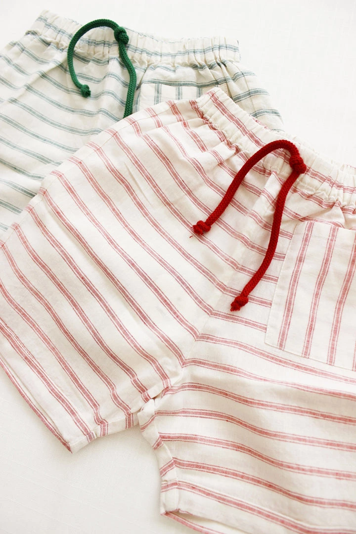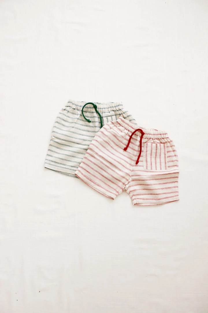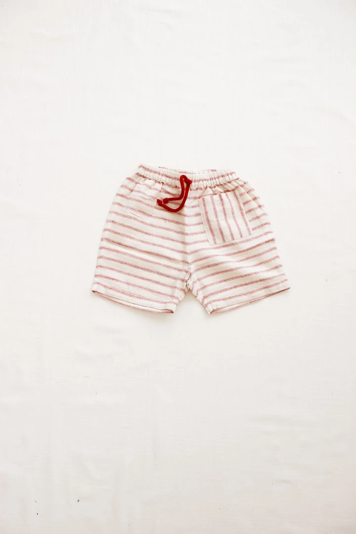 easy- going short fitted with retro length and a classic look, this bottom features a side pocket for all the little finds making it the perfect summer must have, cord tie at at waist for adjusting