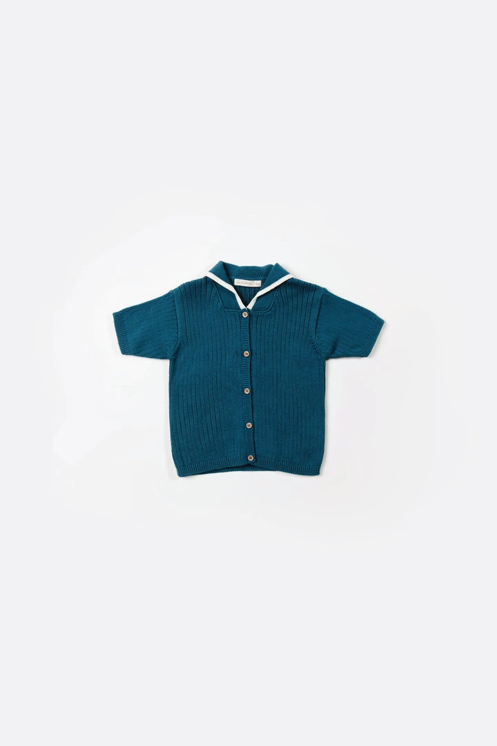 a fitted silhouette with lightweight knit fabrication and classic wooden button front design featuring a sailor-style dropped collar at the back, allows for a nautical wear-everywhere solution to any wardrobe