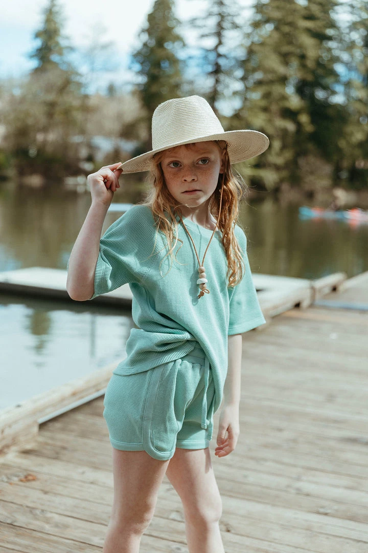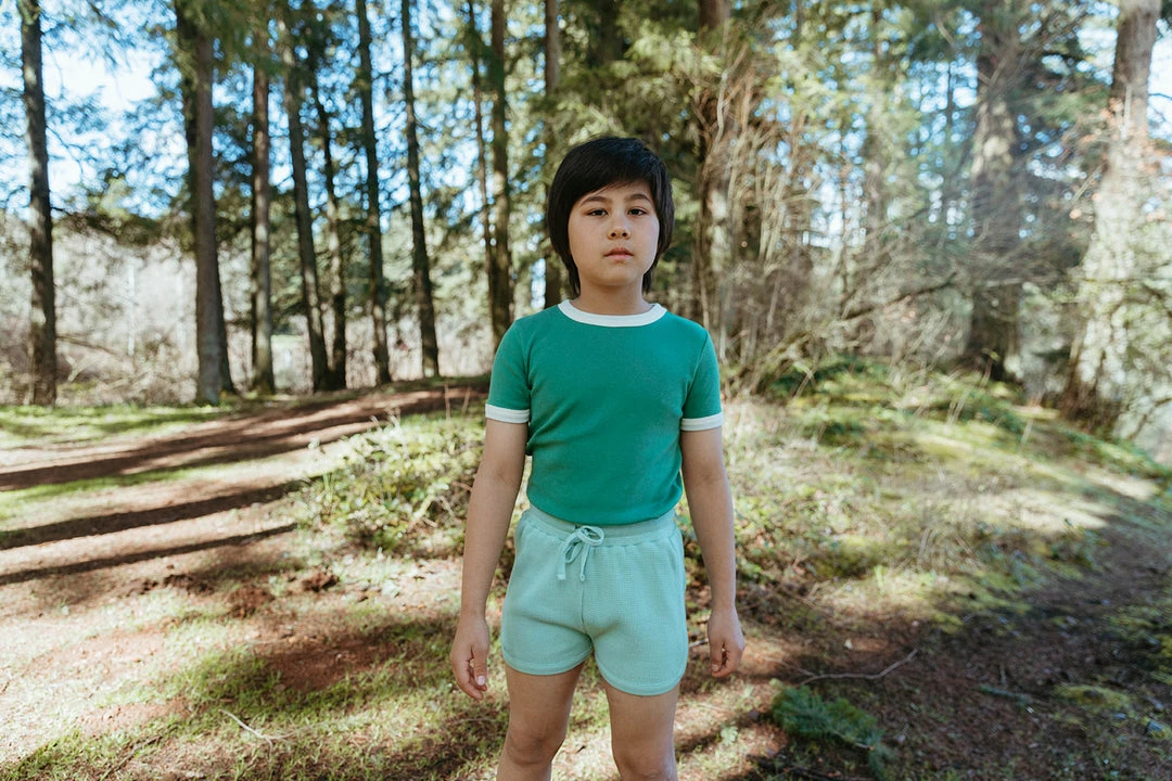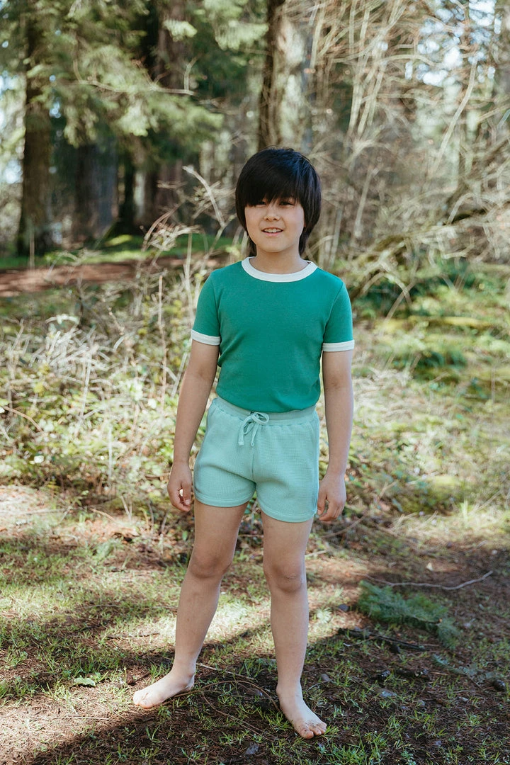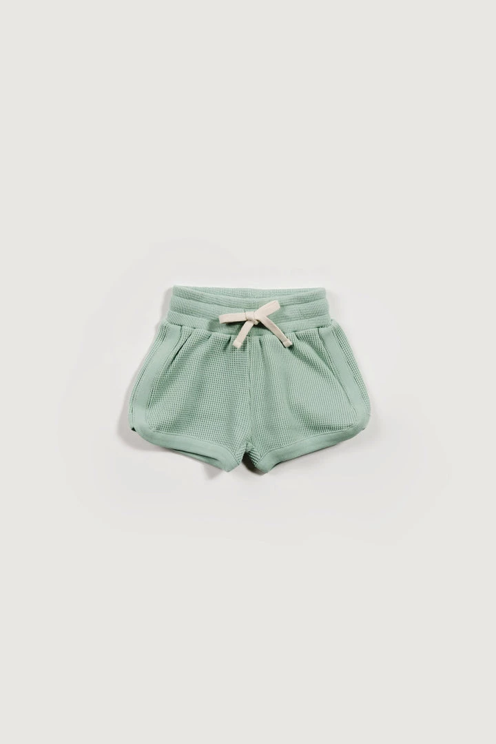 classic track style shorts in a comfy and cozy waffle fabrication tailored to ensure the most comfortable fit and retro look, has a cord tie with gentle elastic waist for adjusting