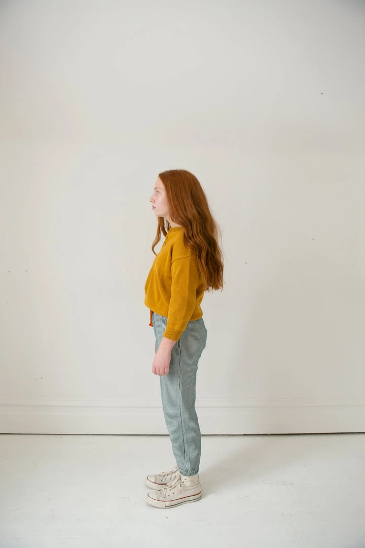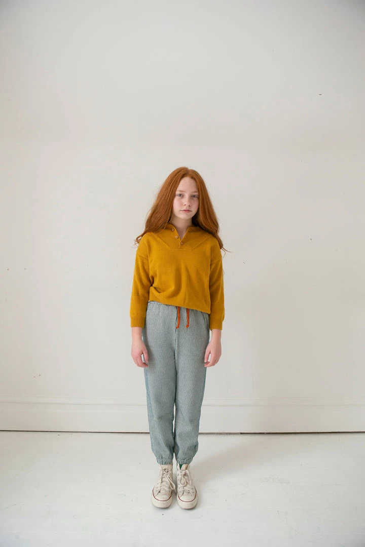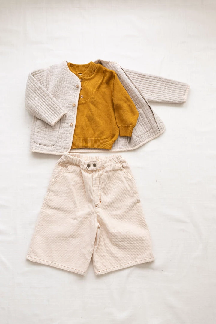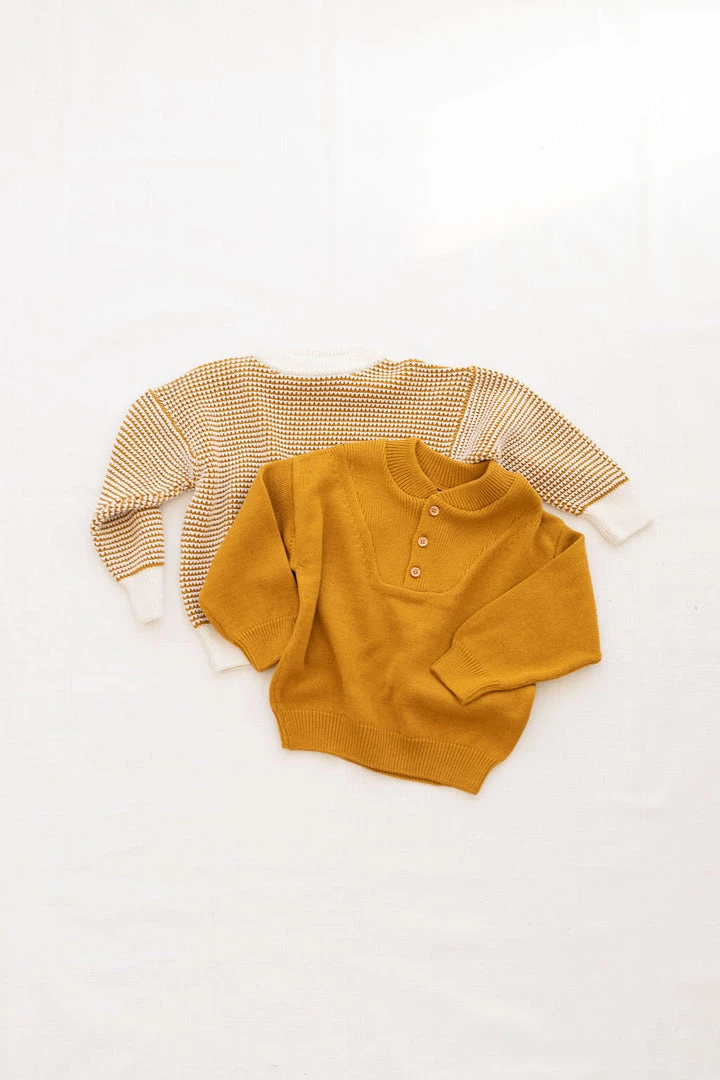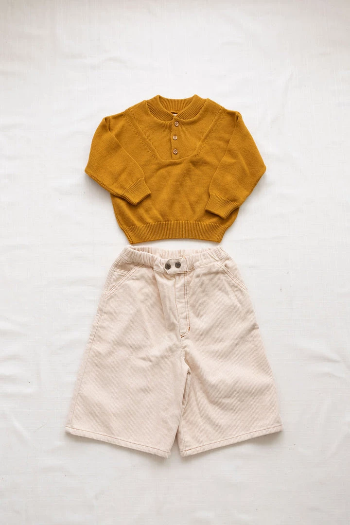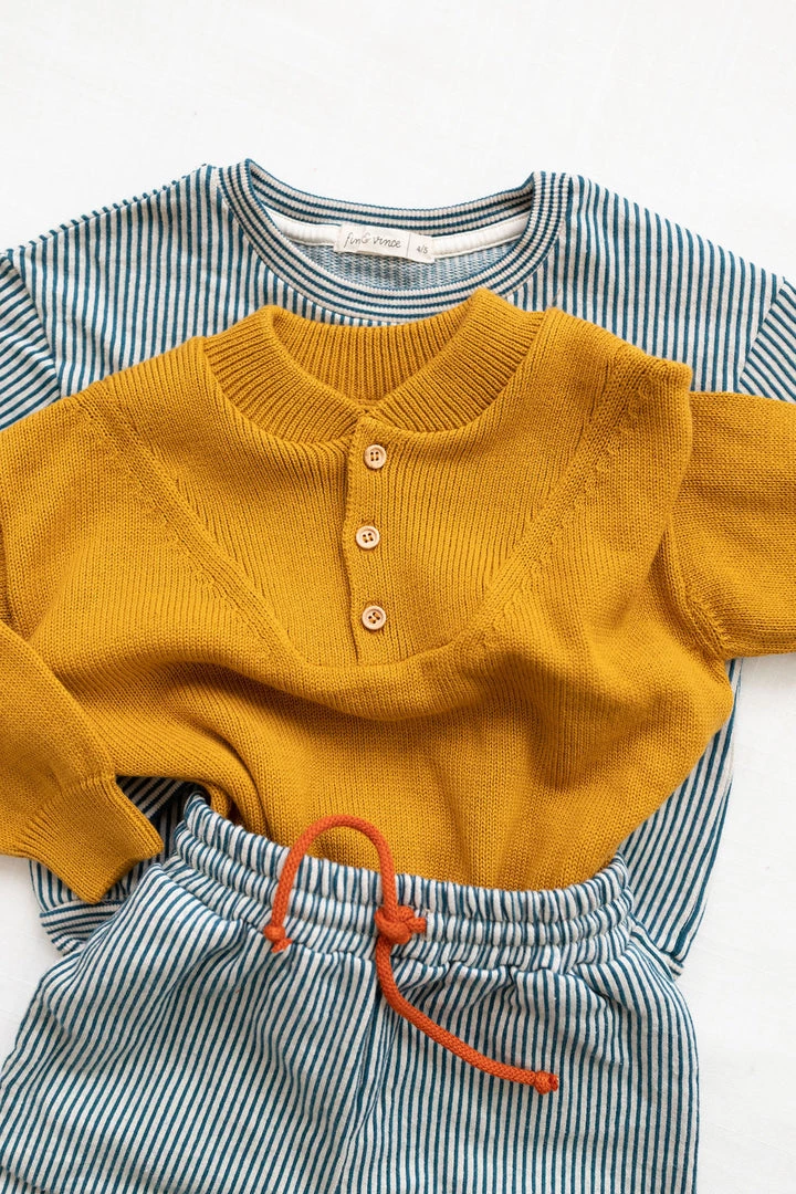 slouchy silhouette with sophisticated detailing such as ribbed collar and three button closure, defined ribbed hemlines and effortless pull over style