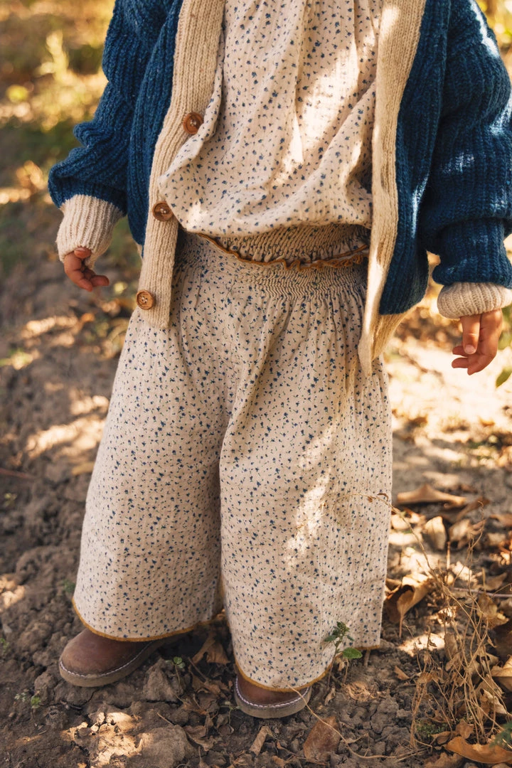 an everyday wide-leg pant featuring a comfortable stretch smocked waist and contrast stitching design for added style
