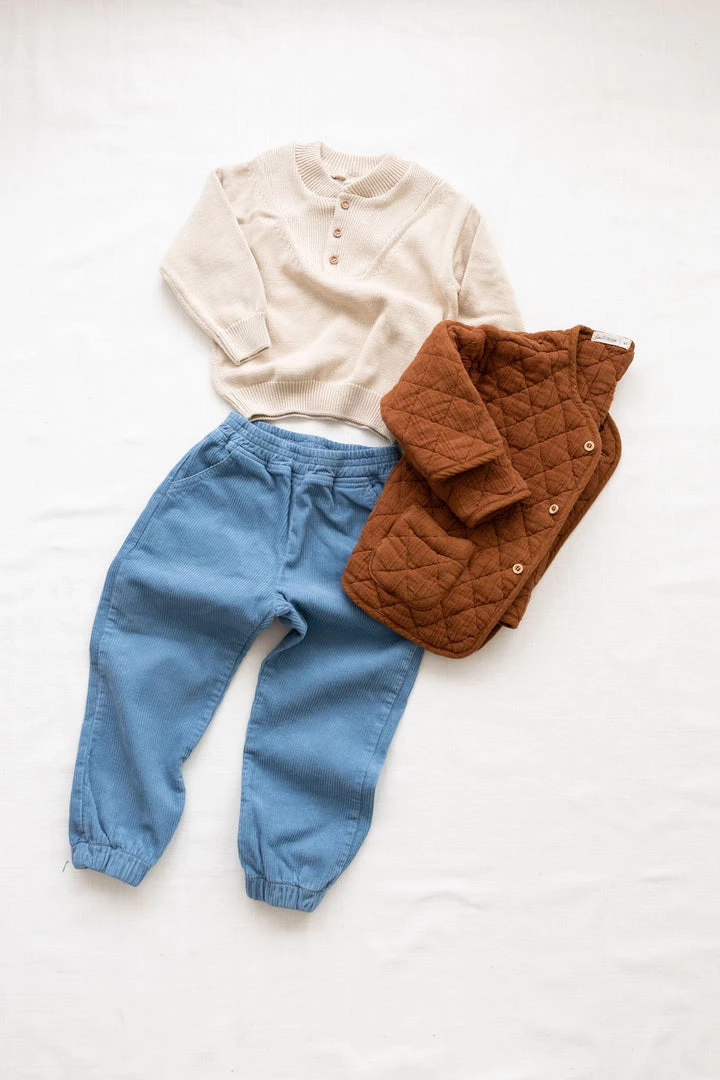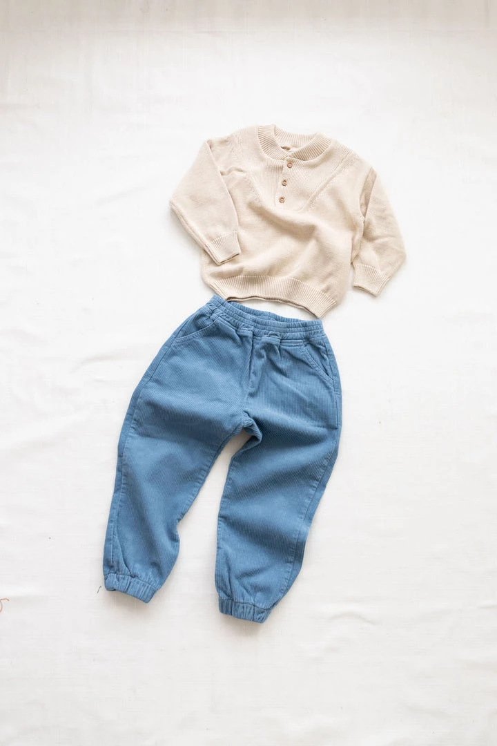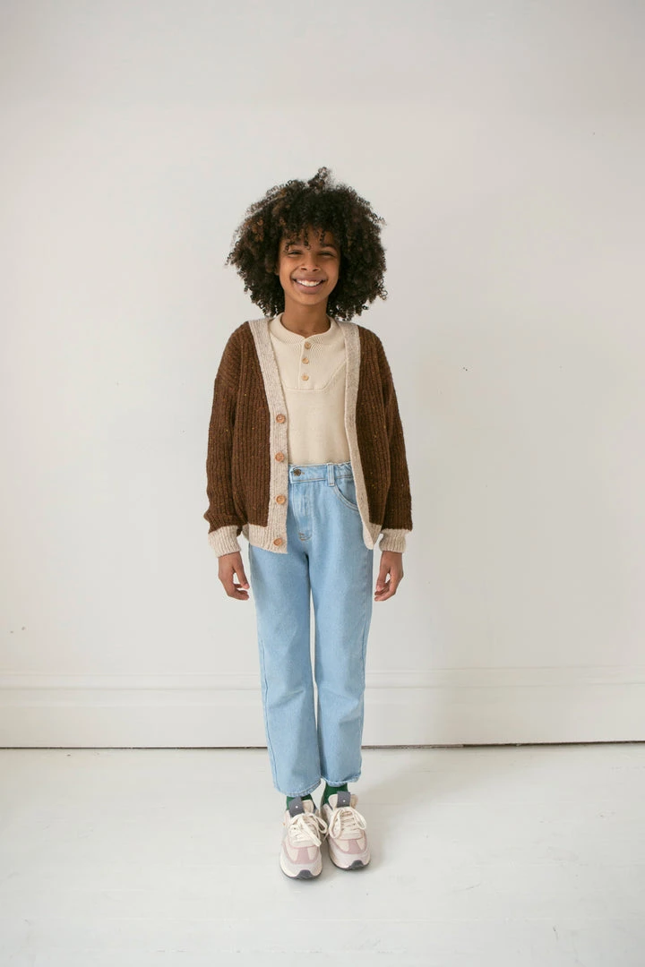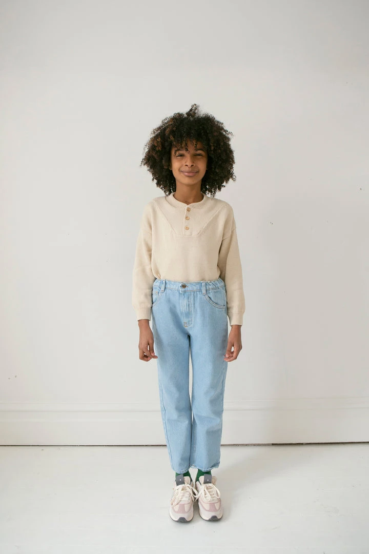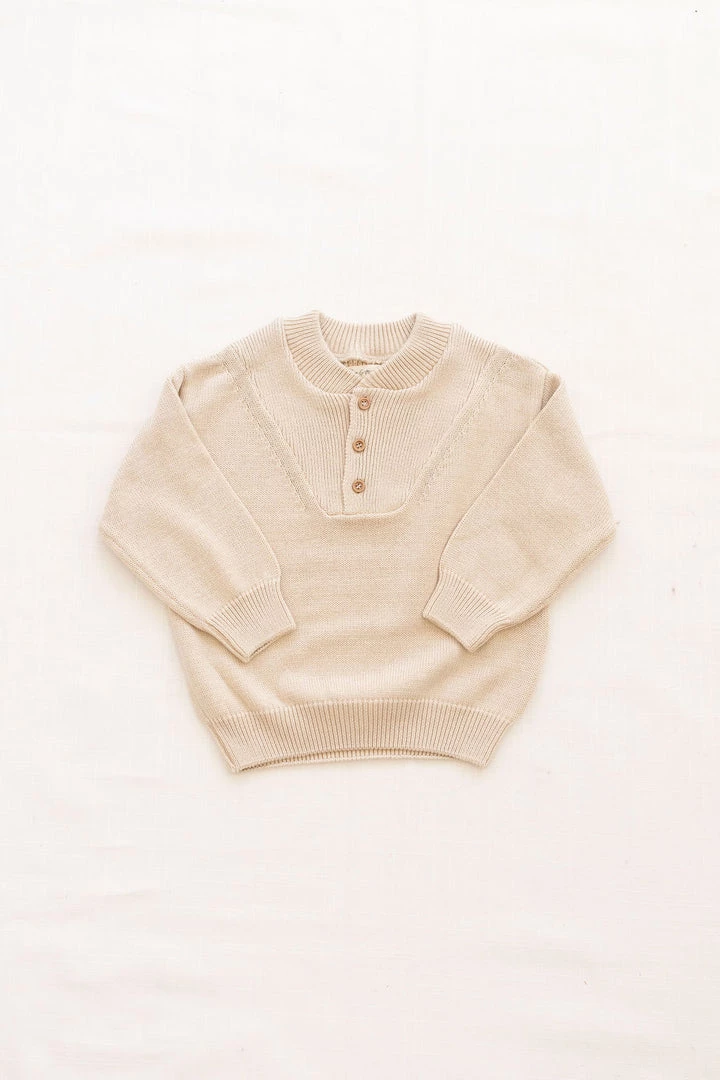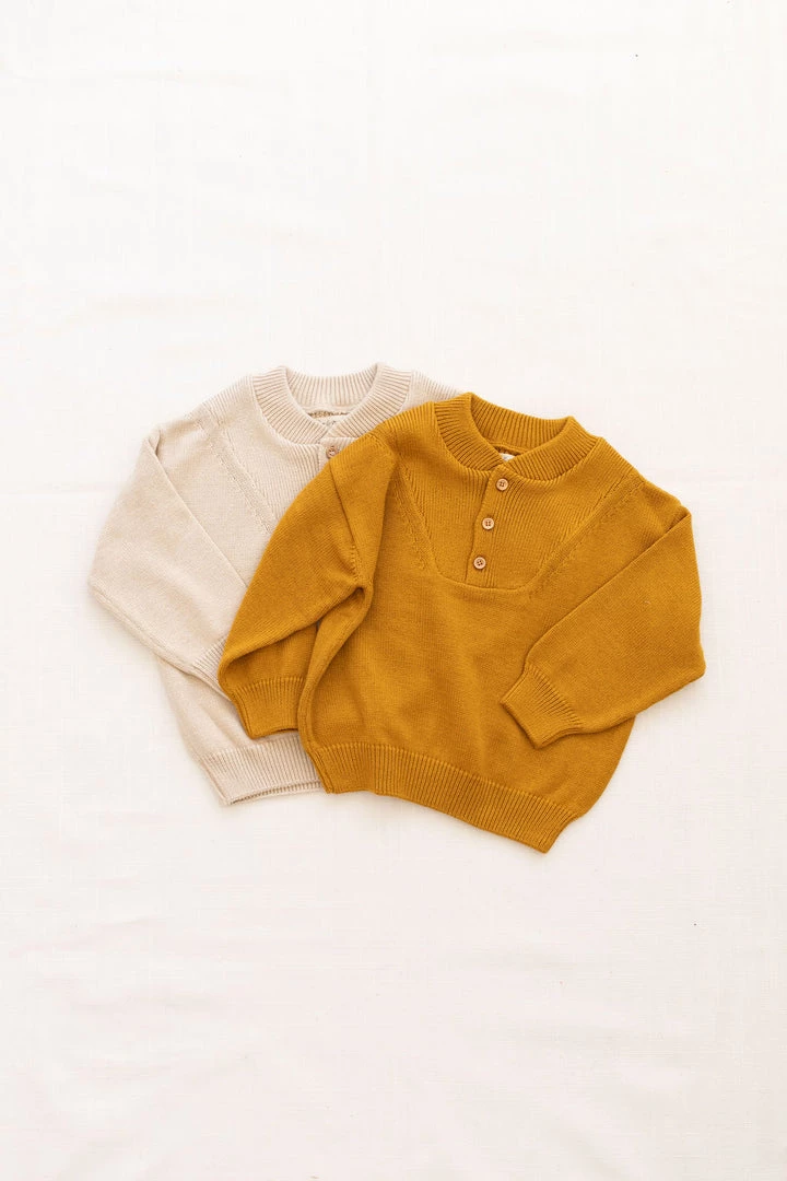 slouchy silhouette with sophisticated detailing such as ribbed collar and three button closure, defined ribbed hemlines and effortless pull over style