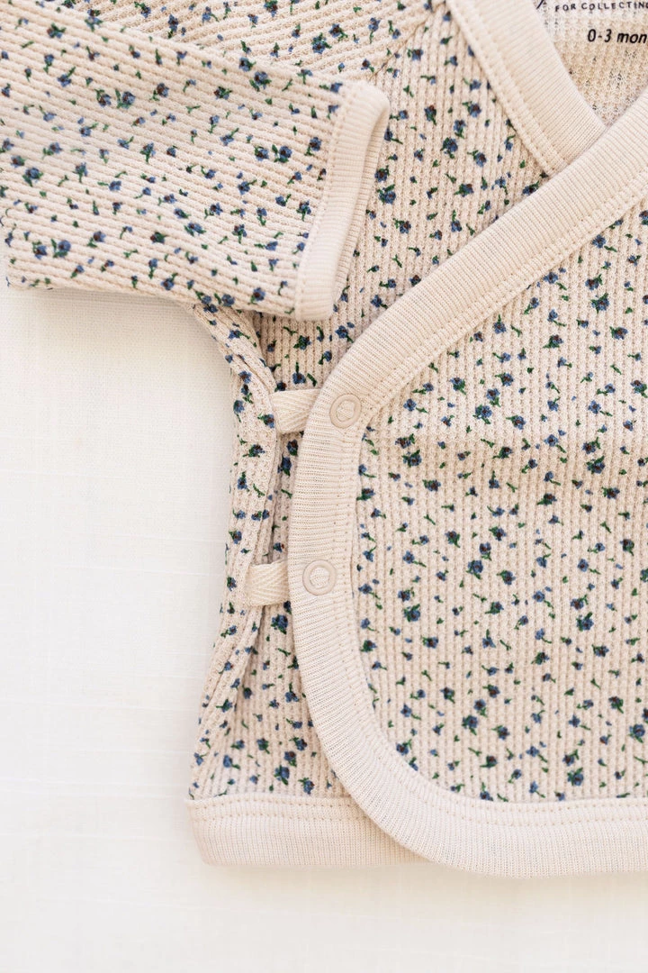 a new style made with the teeniest of babies needs in mind, our waffle wrap top features two snaps at side for effortless closure and long sleeves to protect gentle skin, mix and match with any of our waffle or ribbed home pants for a complete look!