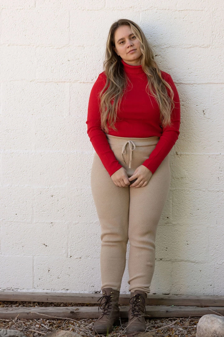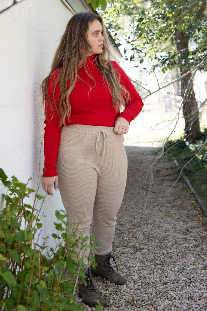 mid-rise casual joggers in a knit fabrication, has tapered leg with a tie at waist for an adjustable and personalized fit, pair with the women’s knit crop sweater for a cute and casual look!