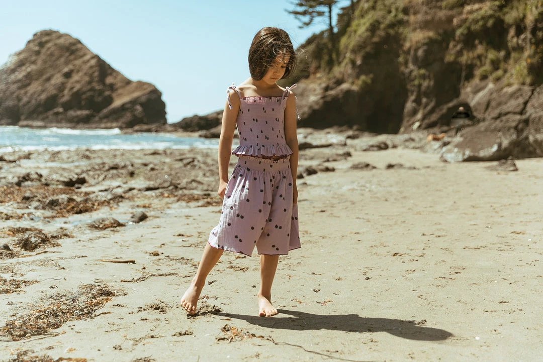 an everyday wide-leg short with vintage length designed with a relaxed and flowy fit featuring a comfortable stretch smocked waist and contrast stitching design for added style