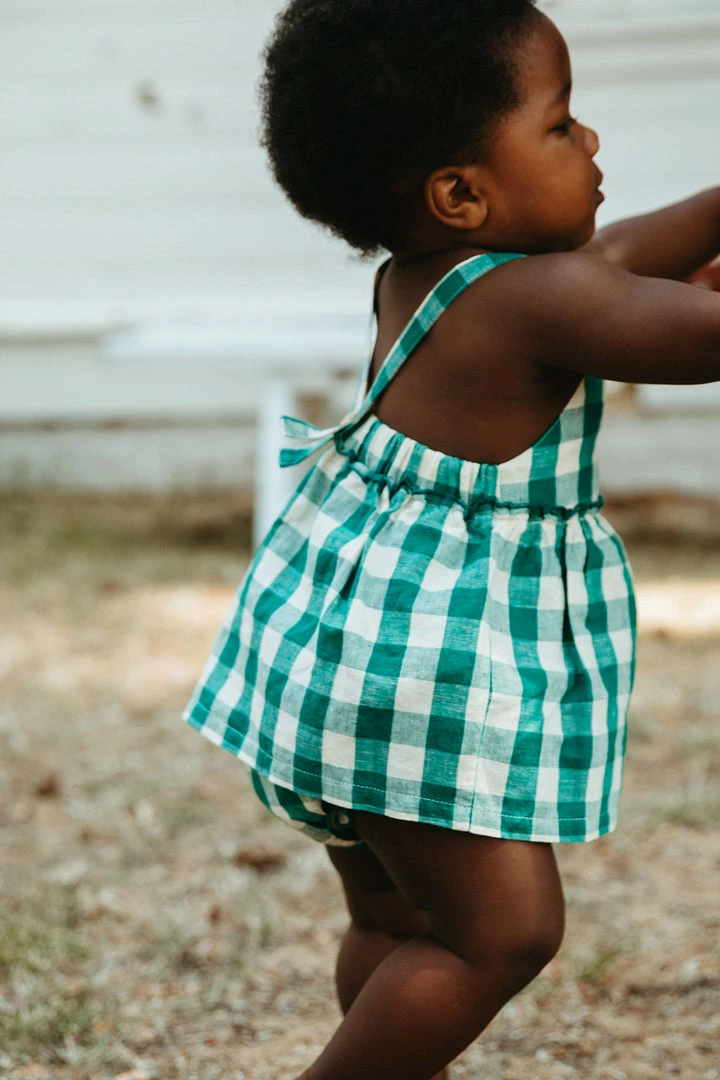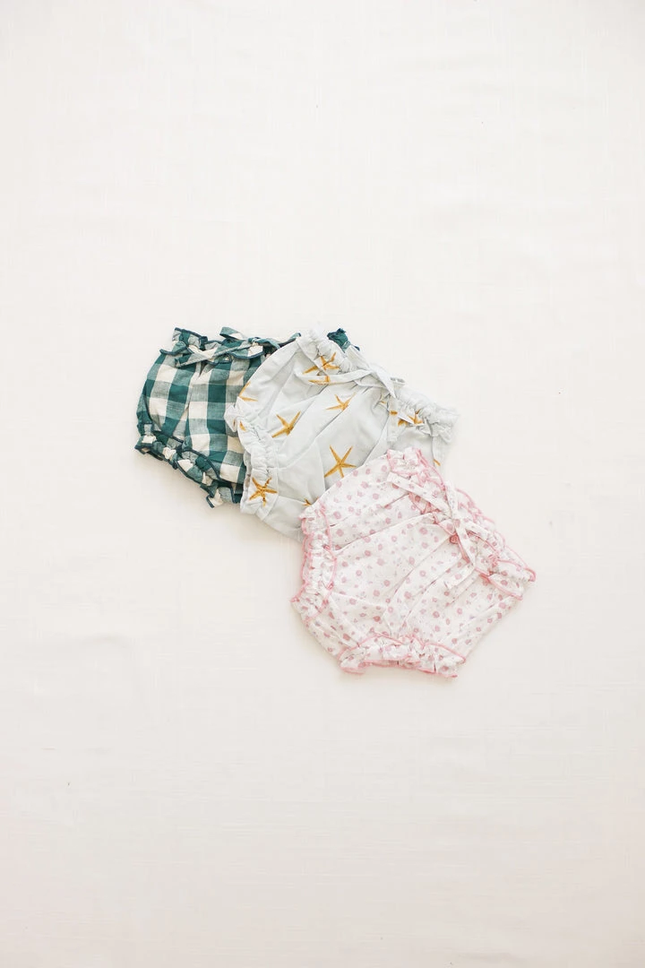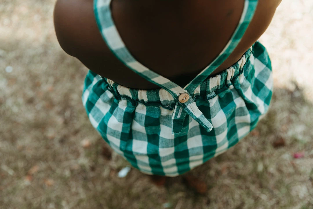 traditional bloomer made in our soft and durable linen, it doesn’t get any sweeter than this diaper cover decorated with ruffled openings at the thigh and hip and finished with a bow, pair with our picnic tunic for a complete look, can also keep alongside your diaper bag essentials for emergency outfit changes
