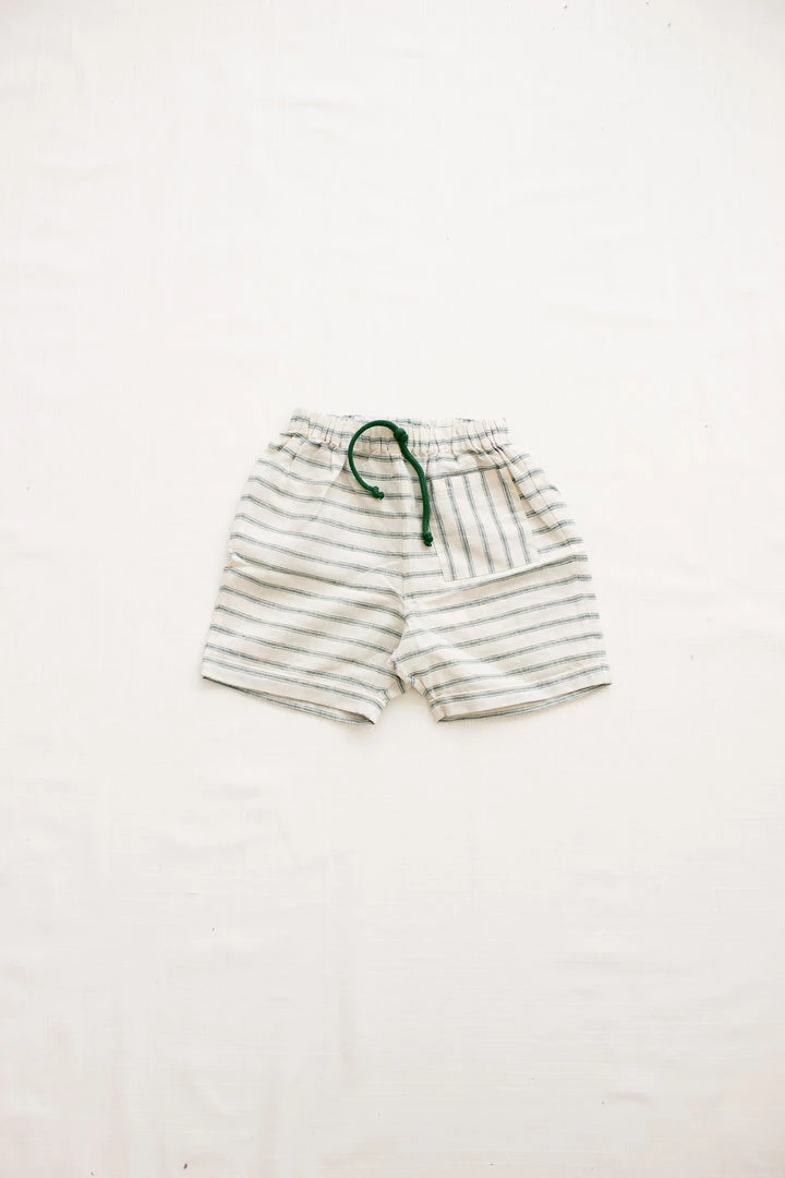 easy- going short fitted with retro length and a classic look, this bottom features a side pocket for all the little finds making it the perfect summer must have, cord tie at at waist for adjusting