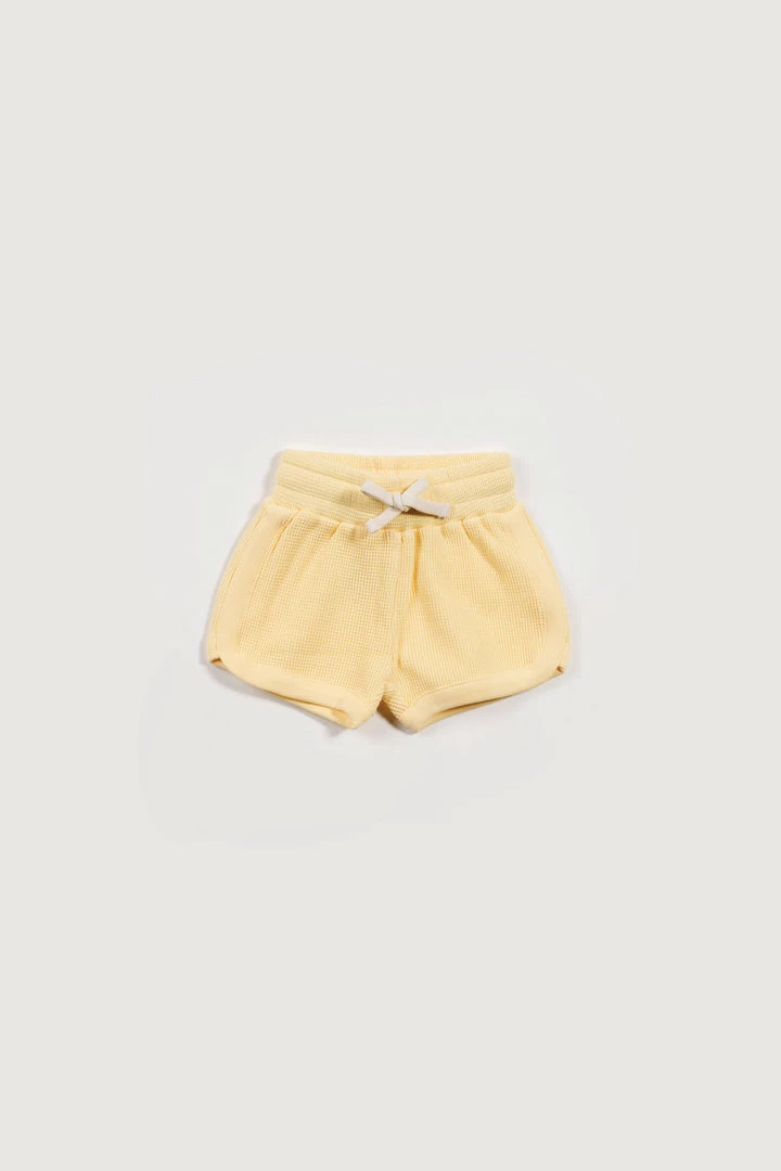 classic track style shorts in a comfy and cozy waffle fabrication tailored to ensure the most comfortable fit and retro look, has a cord tie with gentle elastic waist for adjusting
