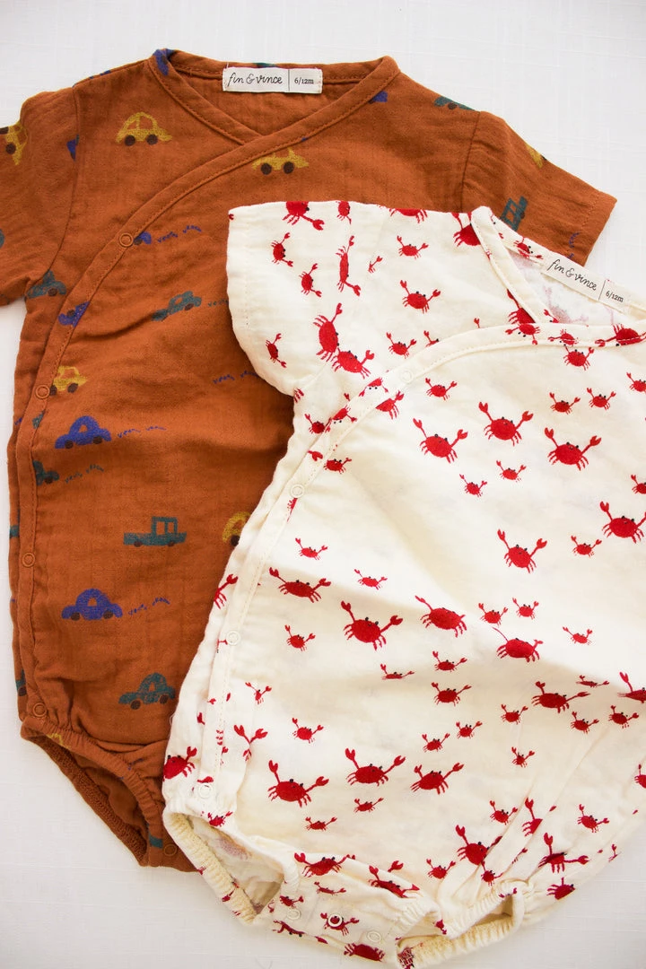 crafted with sensitive skin in mind, our not-so-basic gauze wrap style singlet essential is a lightweight style that offers total comfort while baby is lounging (or napping) the day away, this singlet has snaps both off centered for closure and at crotch for diaper changing, a perfect pairing for any bottom or wear alone for ease!