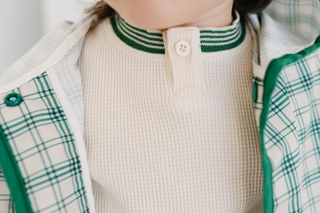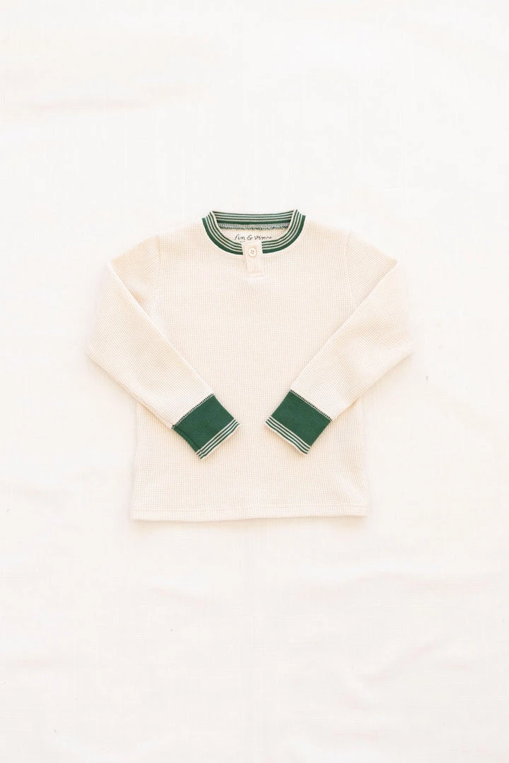 tried and true, our signature waffles are back in 6 new solid colorways to get you excited! features a functioning button at the collar to assist with dressing, retro detailing and snug cotton cuffs, completed with a durable mini waffle knit fabrication that not only looks great but can withstand the test of little ones and the washing machine alike! layer these for added warmth or wear alone, either way you’ll be glad to have collected these gender neutral long-lasting favorites! pair with the matching waffle home pant for a complete look!