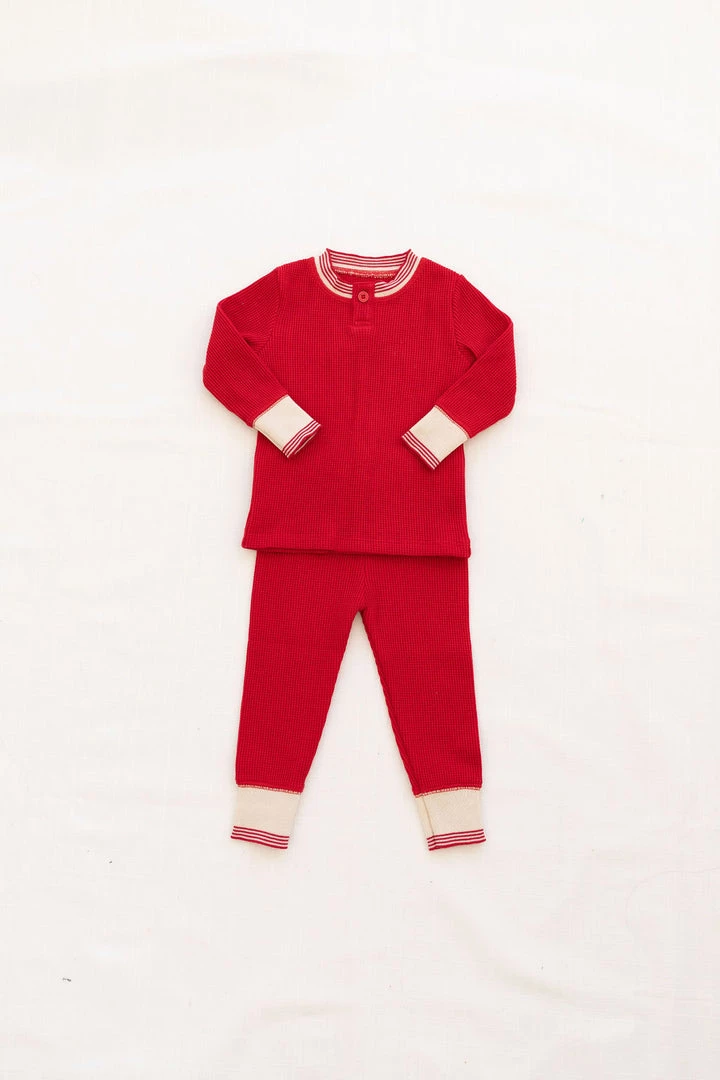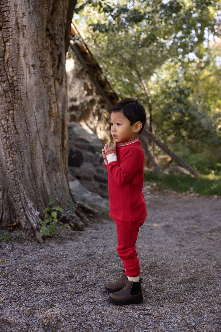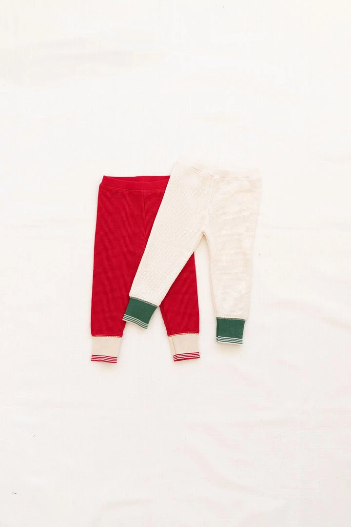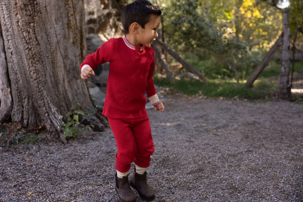 tried and true, our signature waffles are back in 6 new solid colorways to get you excited! features a flexible waistband and snug cotton cuffs to ensure a secure fit, completed with a durable double waffle knit fabrication that not only looks great but can withstand the test of little ones and the washing machine alike! layer these for added warmth or wear alone, either way you’ll be glad to have collected these gender neutral long-lasting favorites! pair with the matching waffle henley top for a complete look!