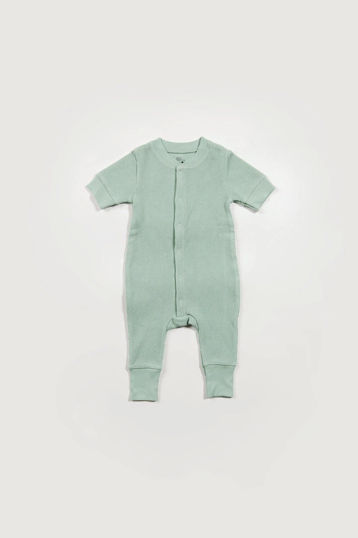 a short-sleeve sibling to our best-selling waffle long johns, featuring our most durable waffle yet, while still not losing that signature Fin & Vince softness in order to give you the very best one piece, wear as loungewear, sleepwear, play wear and everything in between. comes completed with snaps down the bodice for simple closure, you’ll be glad to have collected these gender neutral long-lasting favorites!