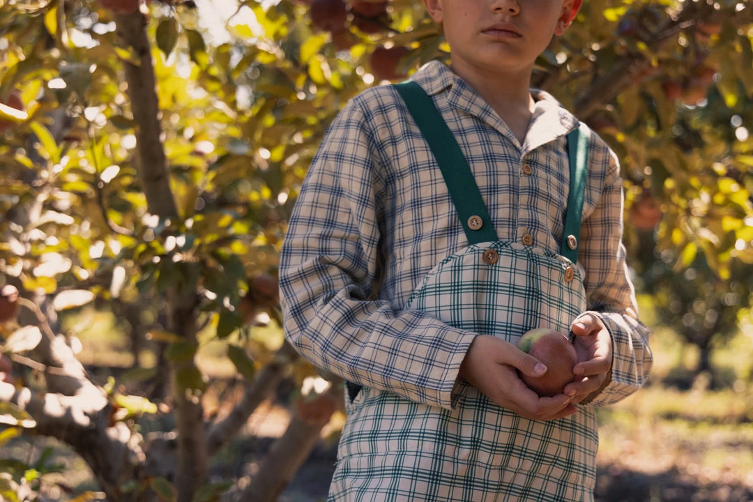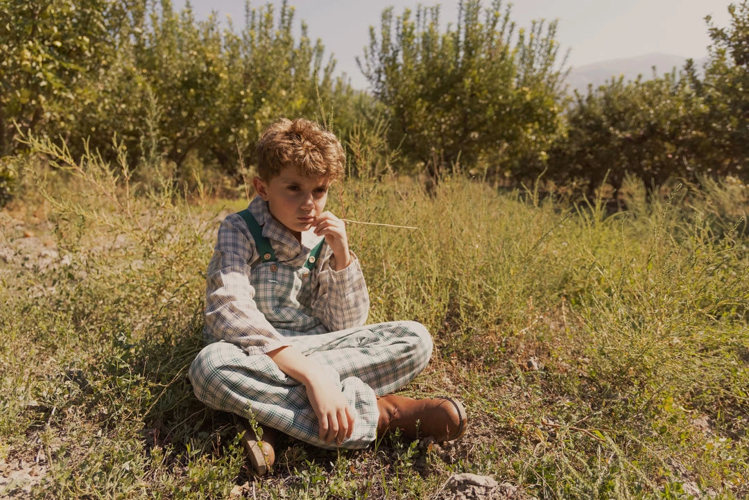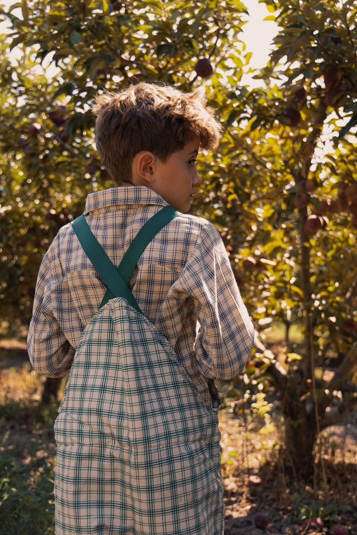 vintage-inspired dungarees for your puddle jumper with a roomy fit that allows for warm layers during the winter months, adjustable buttoned suspenders and an optional foot strap to keep sherpa lined fabric dry and tucked seamlessly into rain boots
