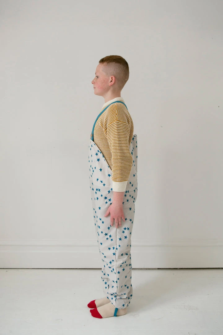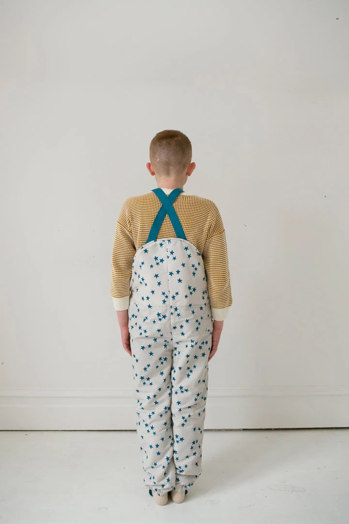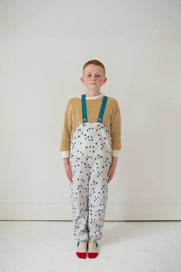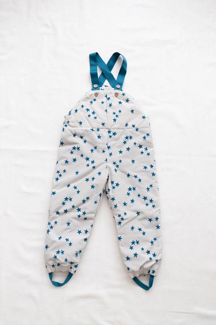 vintage-inspired dungarees for your puddle jumper with a roomy fit that allows for warm layers during the winter months, adjustable buttoned suspenders and an optional foot strap to keep sherpa lined fabric dry and tucked seamlessly into rain boots