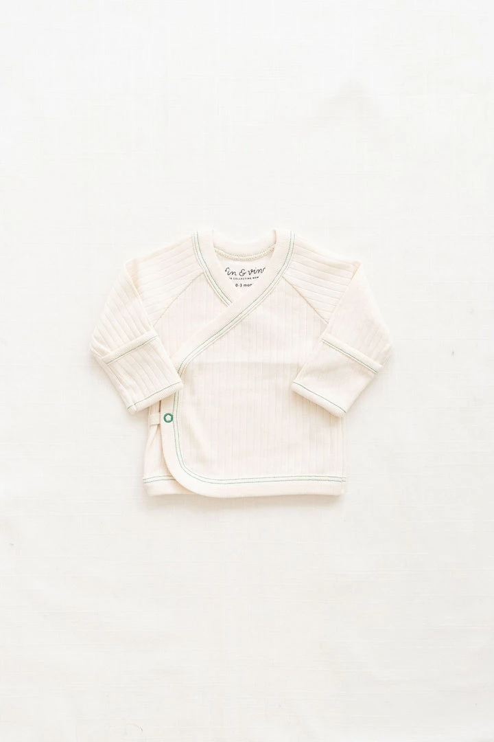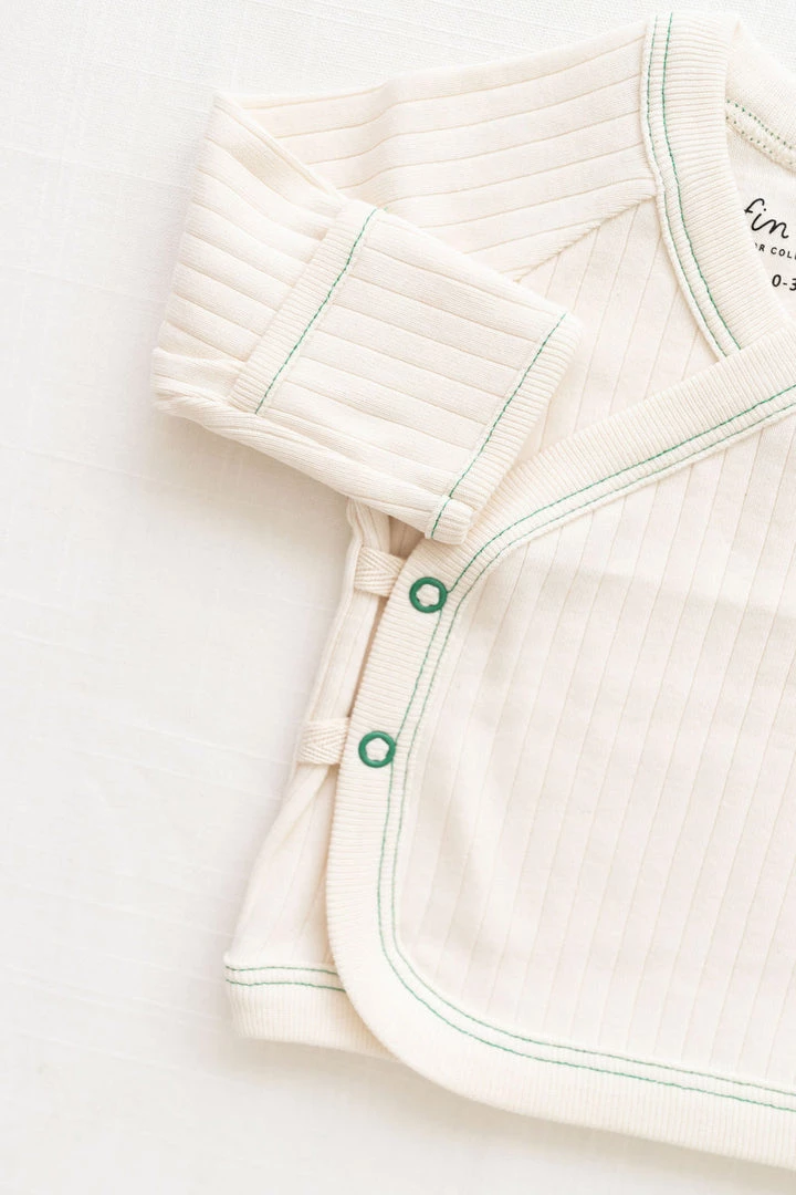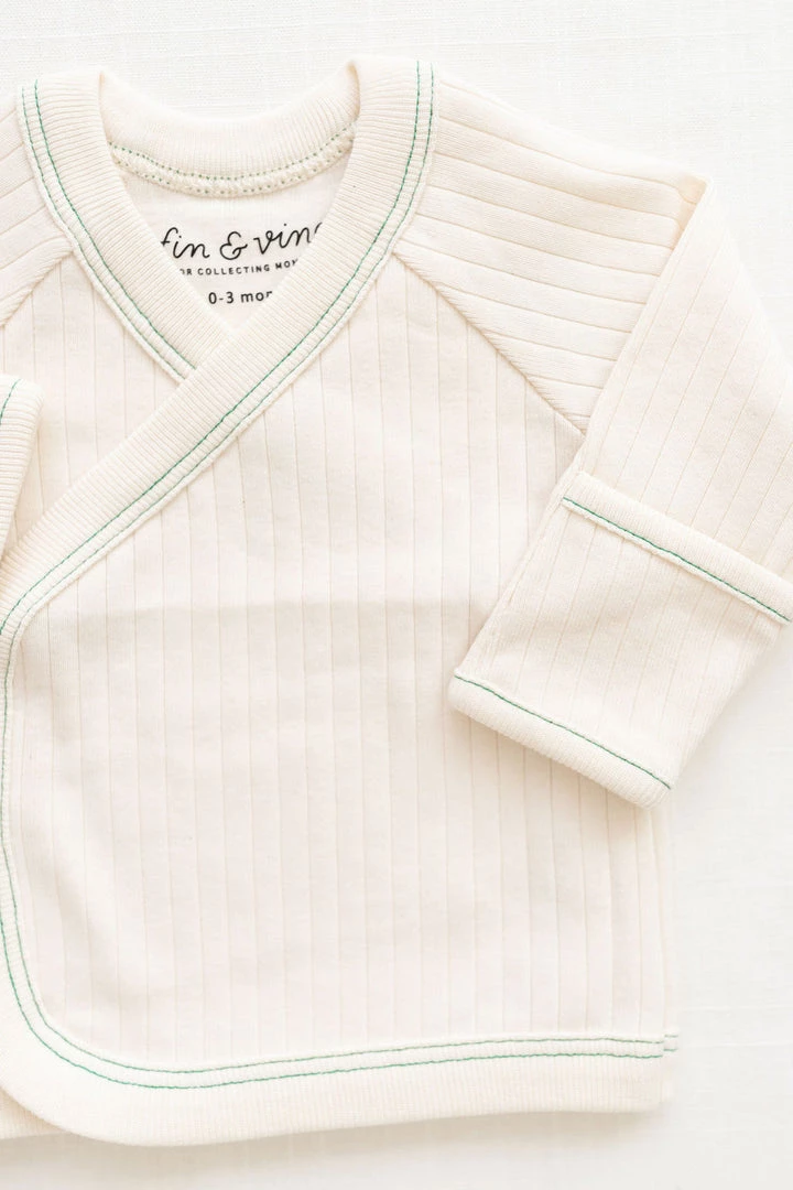 Fin & Vince Wrap Top – Milk + Emerald Stitch Sale