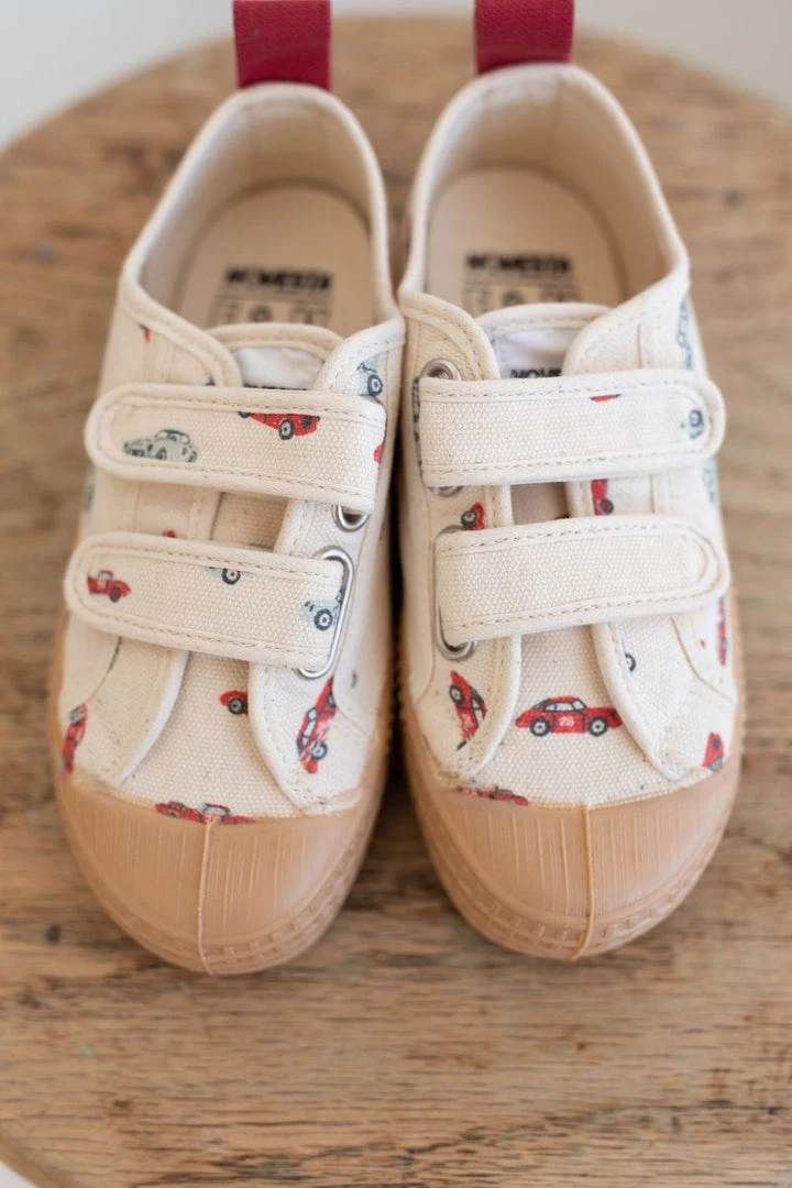 the derby sneakers have a canvas upper. featuring: velcro fastening for easy on and off, a rubber toe cap, a removable insole and a non-slip sole.